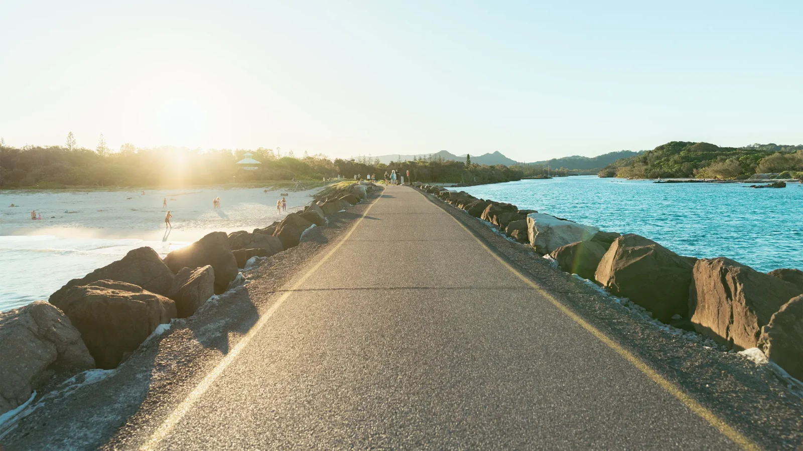 There’s a small marina for fishing boats and small water craft. This is the perfect spot to jump in the tinny or kayak, to explore this turquoise waterway teeming with aquatic life. On the north bank of the Brunswick River is a protected rainforest with Mt Warning providing the hinterland backdrop for spectacular glittering sunsets. The river meanders peacefully from the rock sea walls at the coastline, under the M1 Motorway, winding through dense, fauna-rich bushland, right up to the nearby Northern NSW town of Mullumbimby.